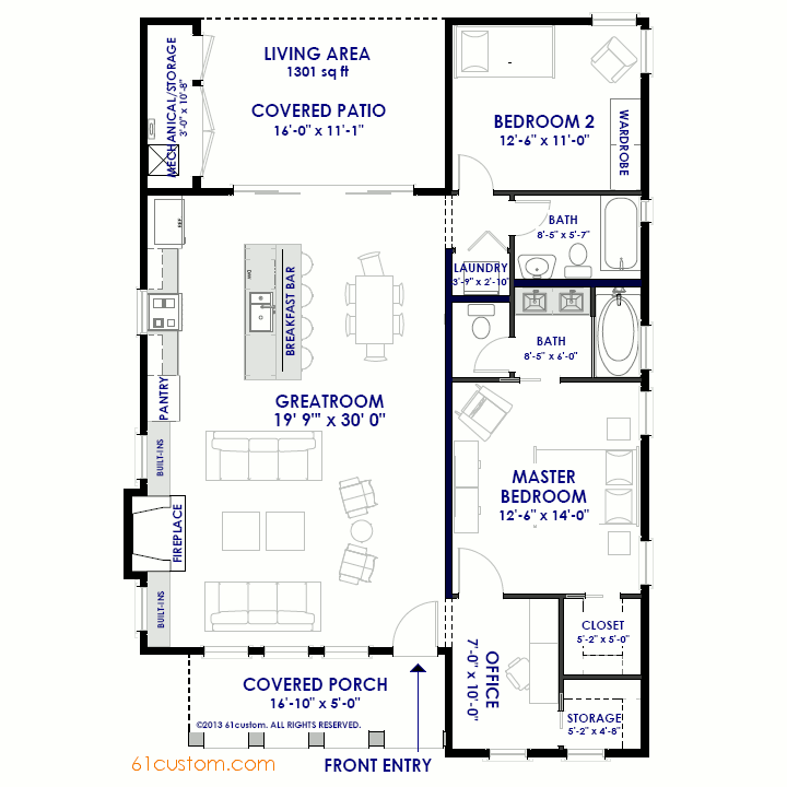 SKU: 1301 Categories: Small House Plans, Spanish & Adobe Style Plans Tags: 1000-2000sqft, 2 bedrooms