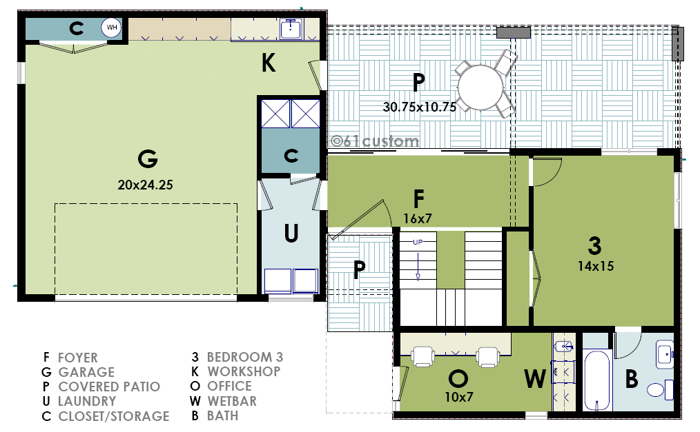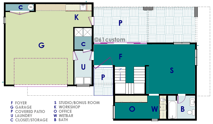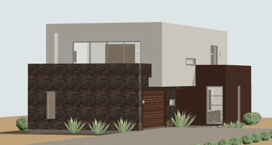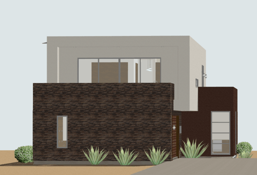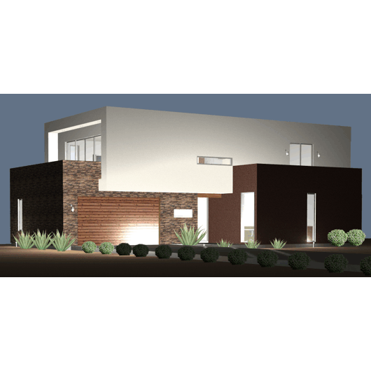 2073sqft ultra modern house plan. This house plan features a roomy entry gallery with a large sliding door out to the covered patio. Just beyond is an entry-level studio home office with a bath, wetbar and computer area. This plan allows clients to enter your office without having to walk through your personal living space. The two-car garage is also home to a workshop area with its own sink and exit to the backyard.